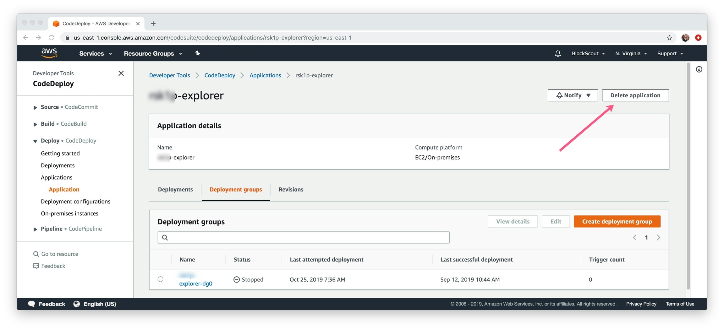 Removing CodeDeploy Application