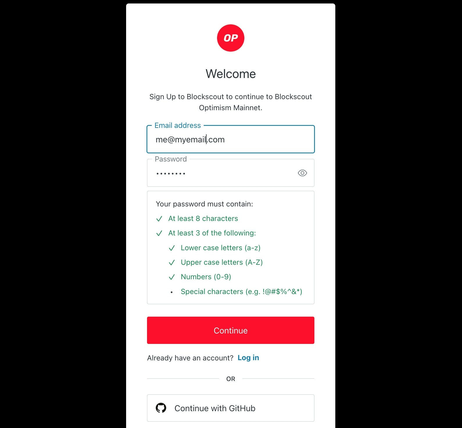 a. Sign in with your existing email and password b. Create a new blockscout account with an email/password c. Sign in with an existing github account
