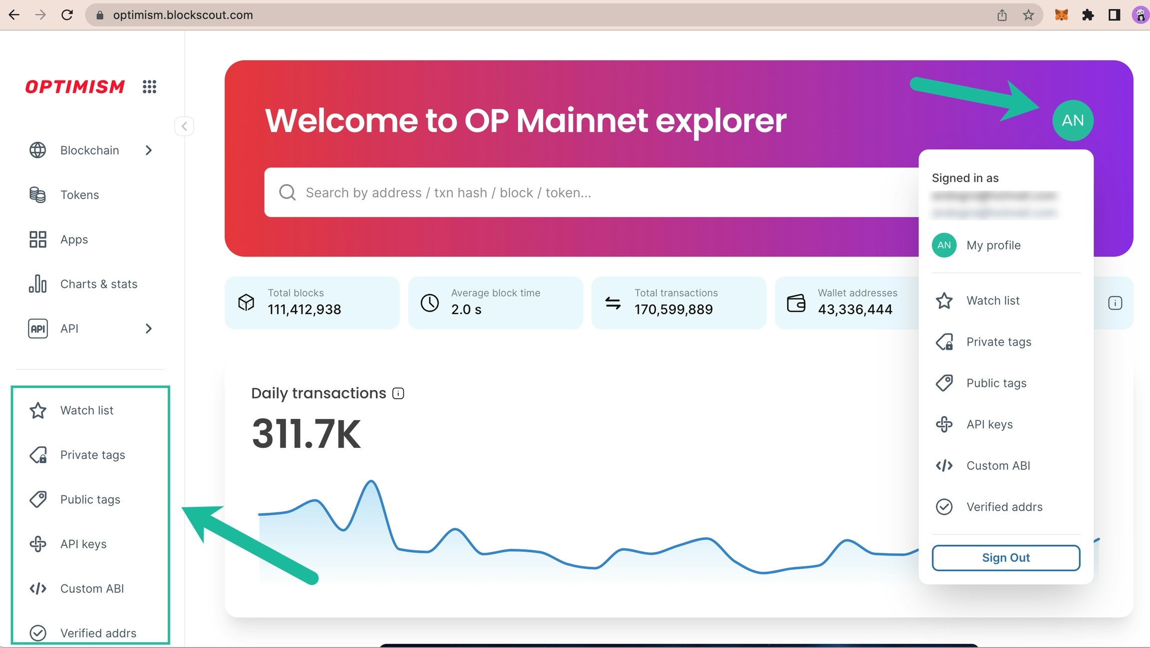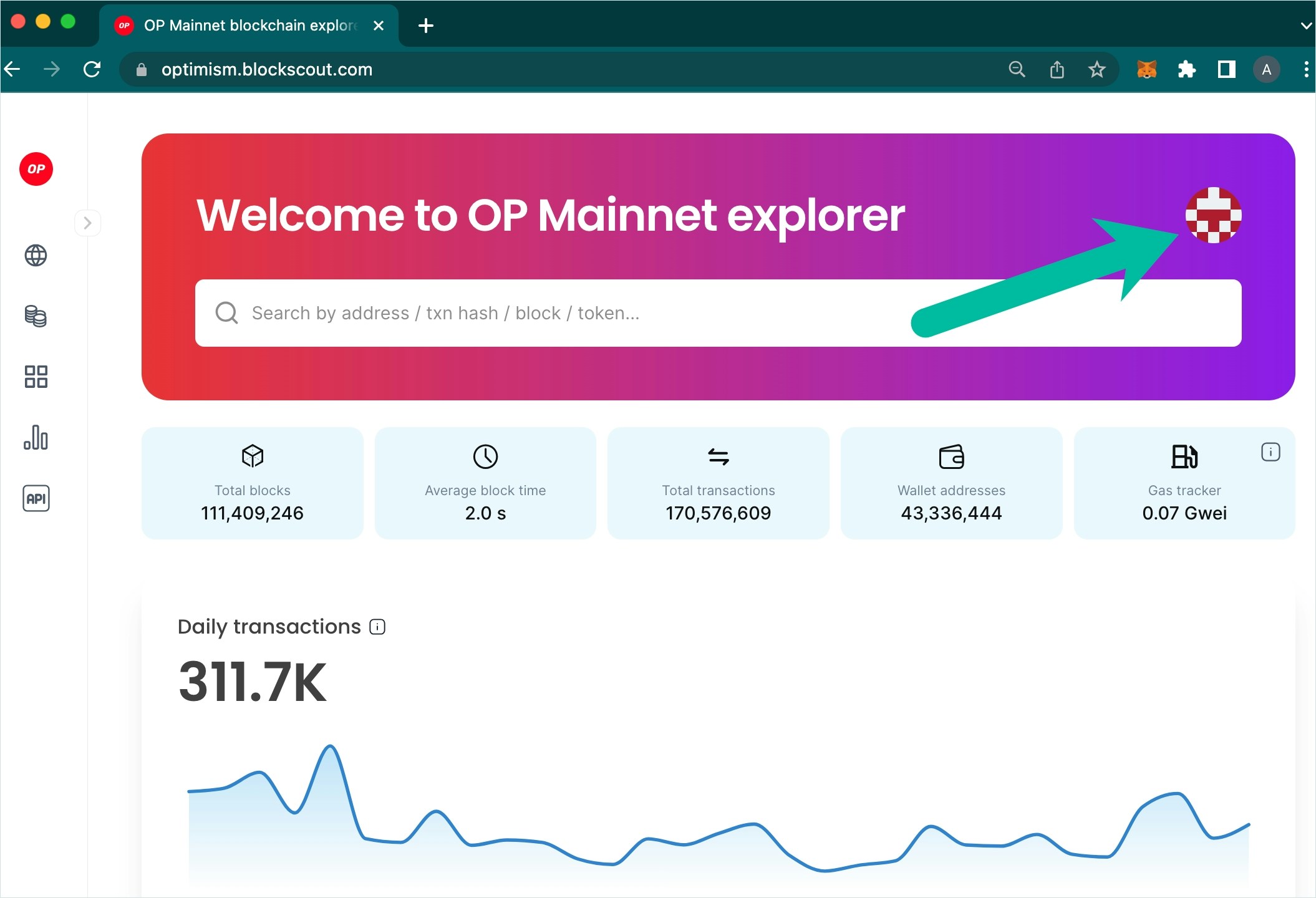The following example is created using the Optimism Blockscout instance.