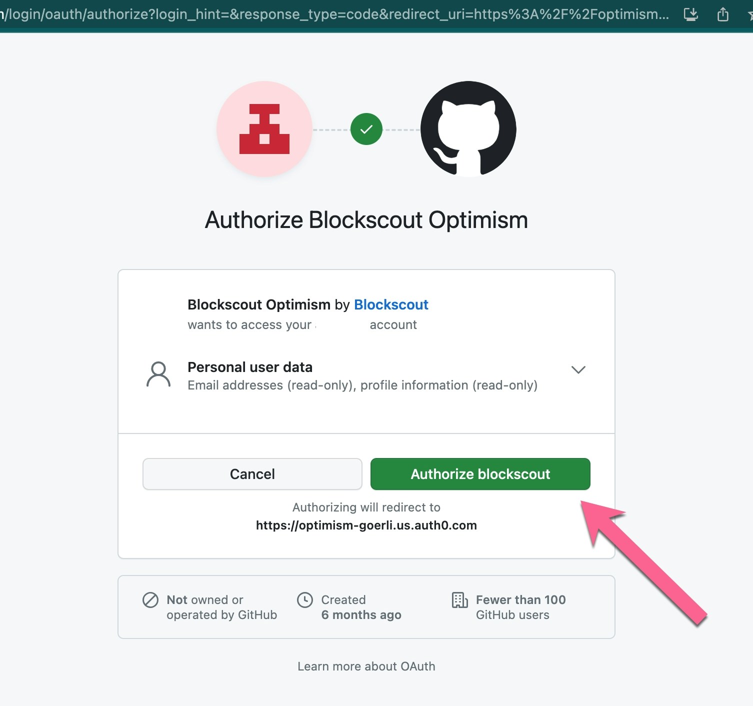 Authorize blockscout access using your github account